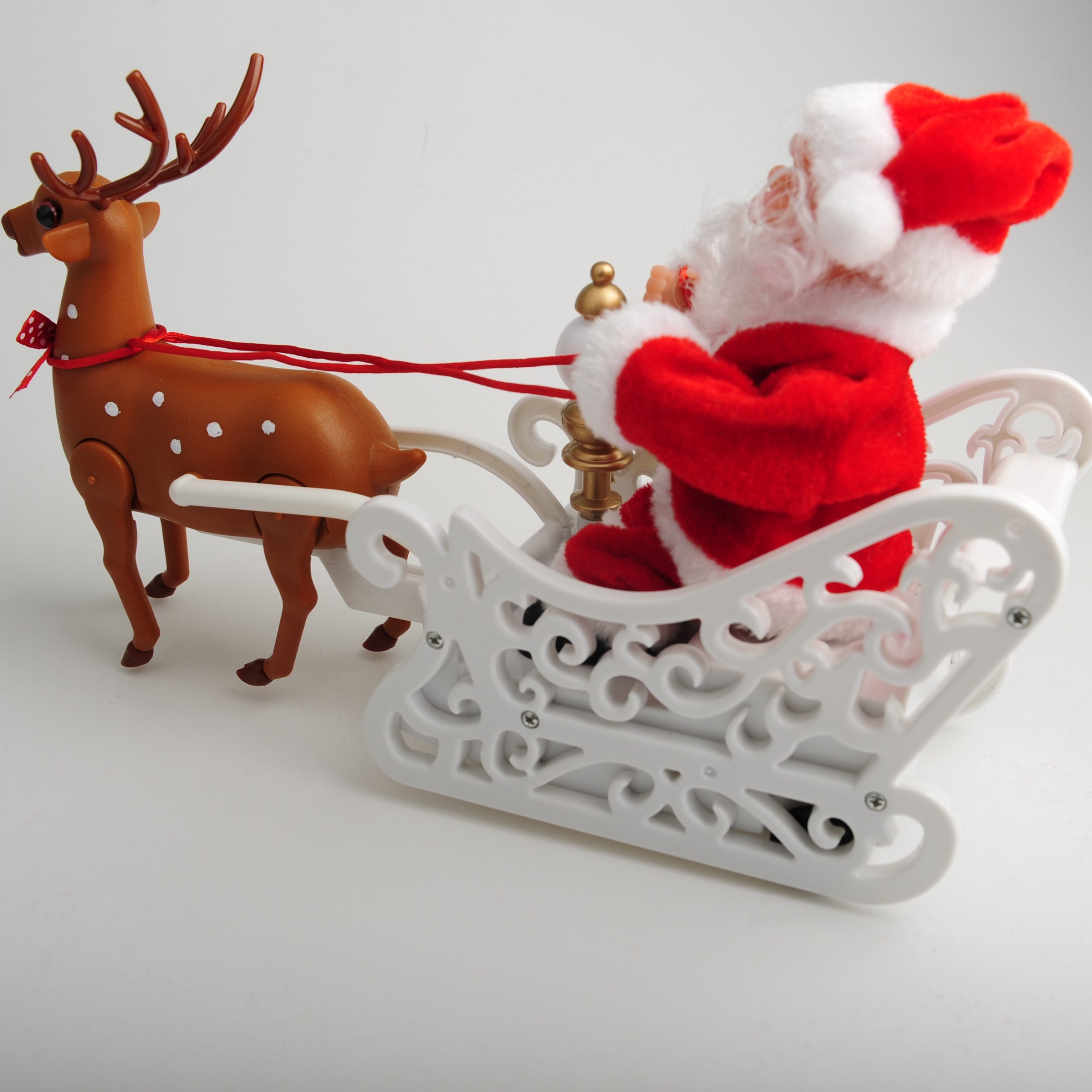 Watch as the adorable reindeer pulls Santa’s sleigh, creating a magical scene that will captivate both children and adults alike. The intricate design and attention to detail make this toy a true masterpiece.